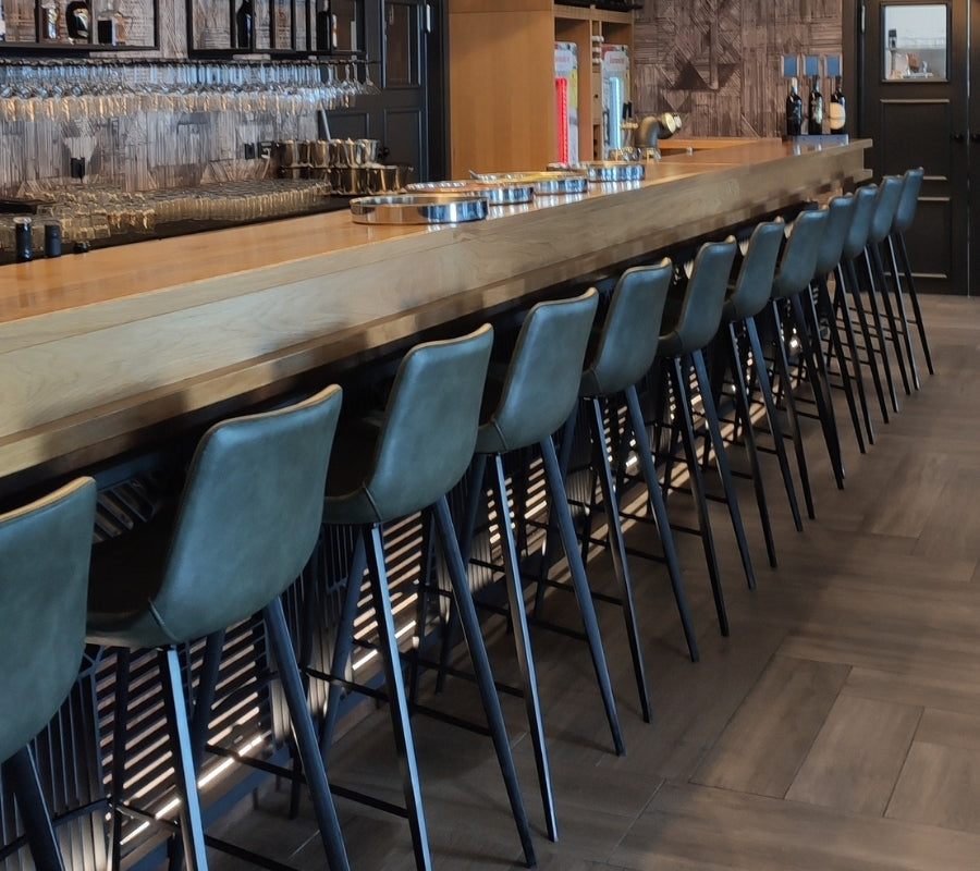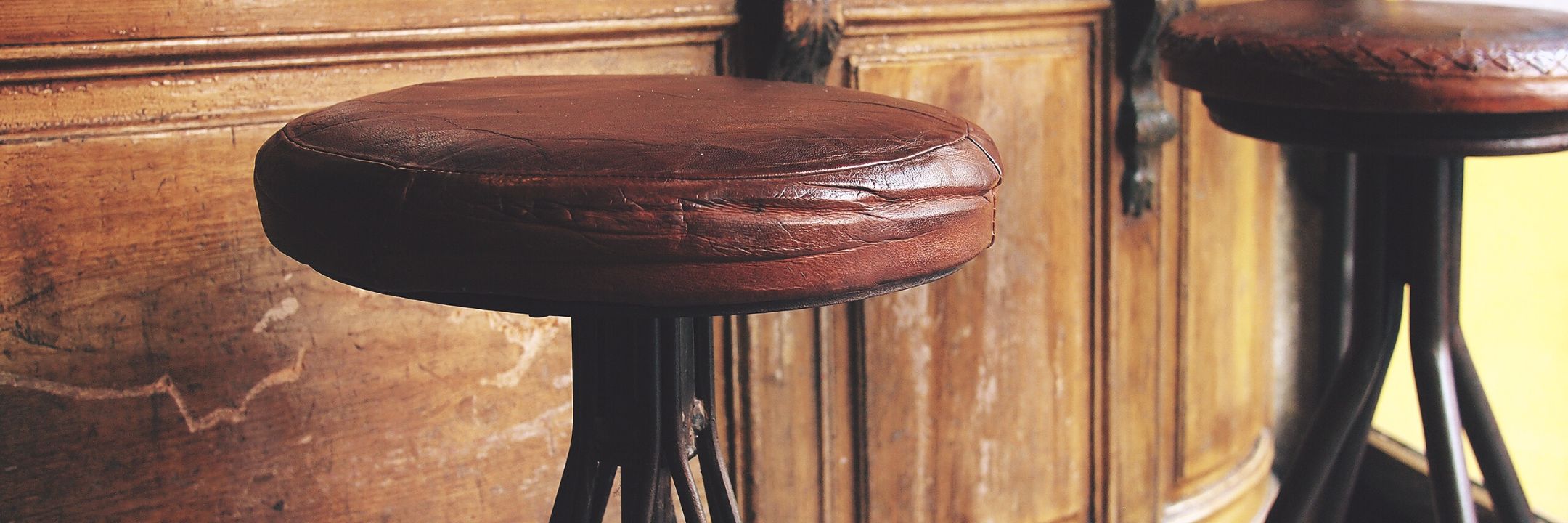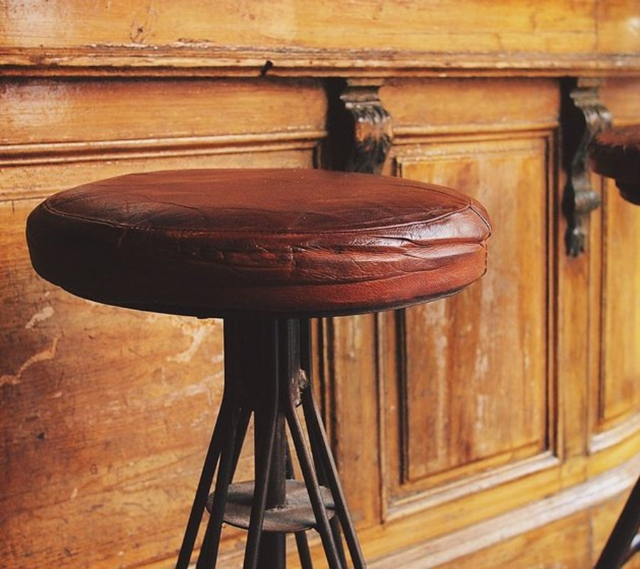Taburete de bar vintage acero dorado y semi piel marrón Butan H75